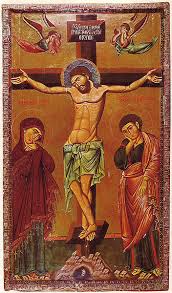 The Byzantine icon has the insignia “King of Glory” which indeed is the true title of the crucified Christ