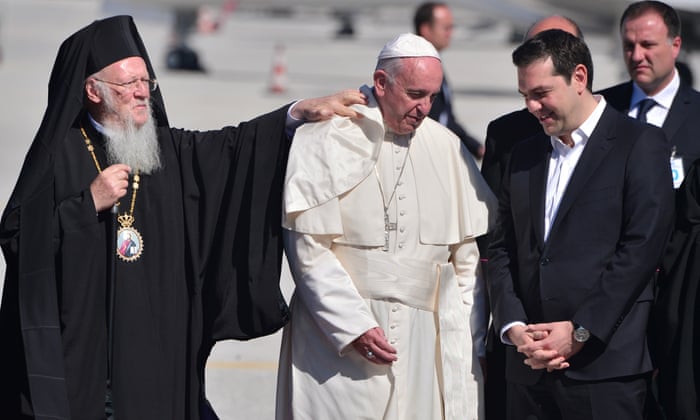 The visit is also seen as a further warming of ties between the western and eastern branches of Christianity, almost a millennium after their bitter split in 1054. In a break with protocol, the pope chose to be driven to the detention camp, in the hills above Mytilene outside the village of Moria, with Bartholomew.