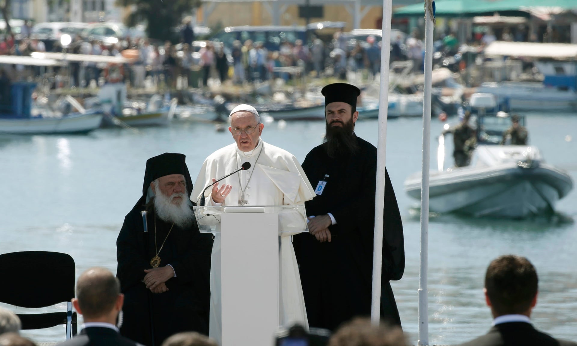The leader of the Roman Catholic church made the unprecedented intervention on Saturday during a trip to the island to highlight the refugee crisis unfolding across the continent.