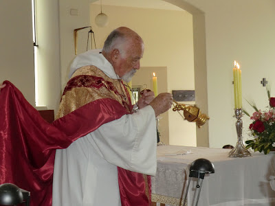 This is the church of the cave. St Francis of Assisi attended its consecration as a young man. He must have impressed the monks because he is portrayed in a picture account of the ceremony on the wall of the church, as well as a large painting of him among the saints - painted while he was still a young man!!